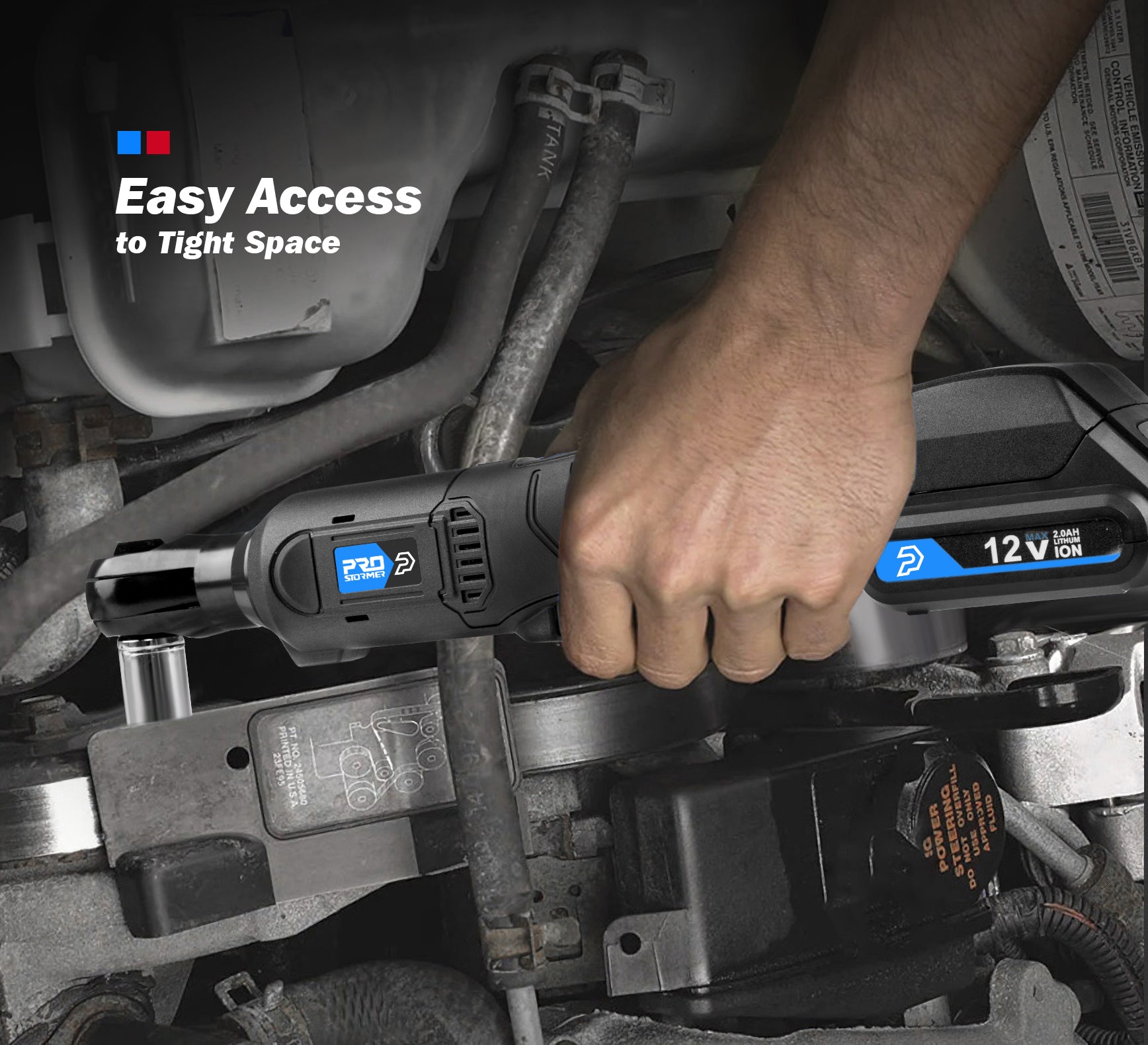 - [Compact & Lightweight] – Weighting only 2.98lbs (with battery), the ratchet wrench reduces user fatigue for long period of using, 3/8″ small head design for working in tight spaces and engine bays.